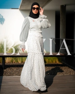 Material: Chiffon polka Details: With furing, buttons on manset, back zipper