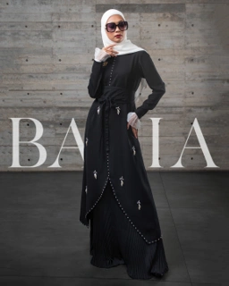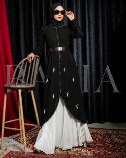 Material: Polyester jetblack. Details: With 3d sequins, bottom pleats, include obi belt